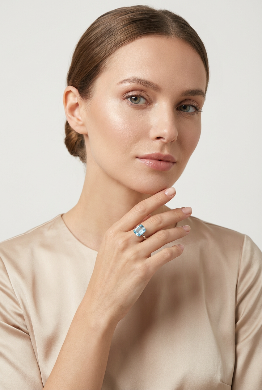 Ring in 925 Sterling Silver with silver-toned box and crystal stone to finish. Simple, minimalist, and adds color to our day!