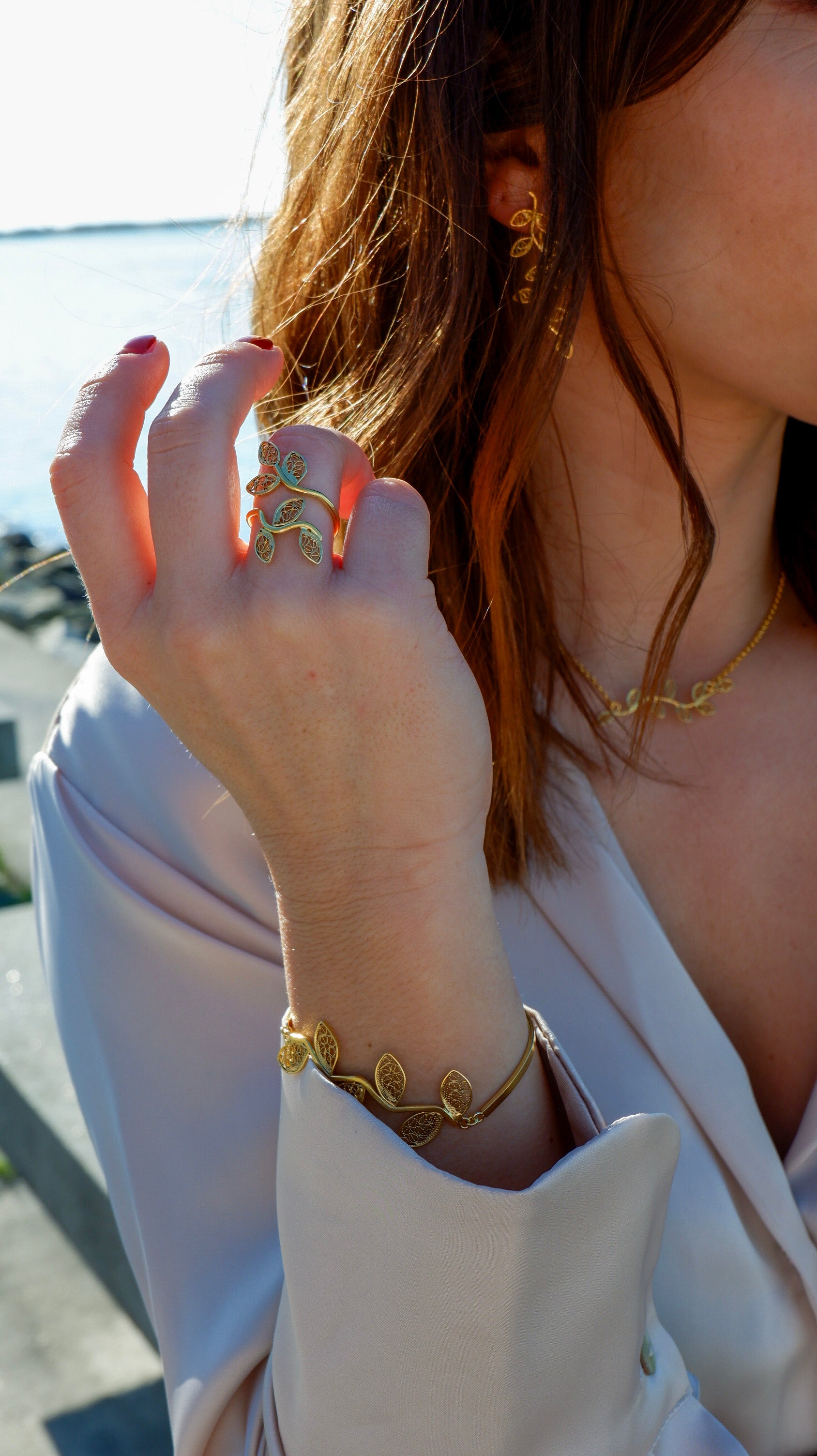 Anel em Prata de Lei 925 com Ramificações, trabalhados à mão em filigrana. Traduzido do grego e do hebraico, o termo “ramo” significa rebento, broto, galho ou palma. Todas essas definições representam o novo, o renovado, o começo ou recomeço, por isso a importância do ramo como símbolo de vitória e prosperidade em nossa vida.