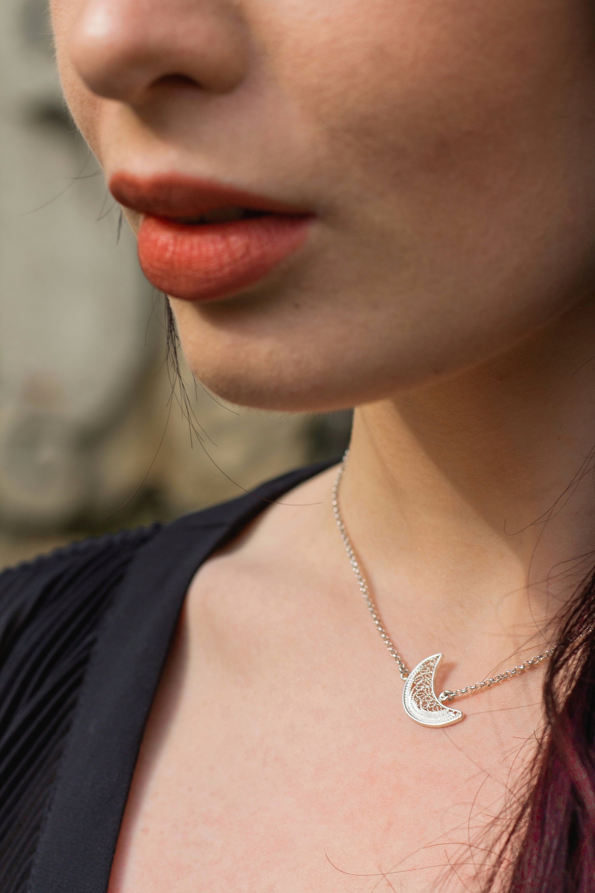 Colar em Prata de Lei 925 com design de Meia Lua feito à mão em filigrana. Um presente da natureza que podemos admirar nas suas variadas fases.