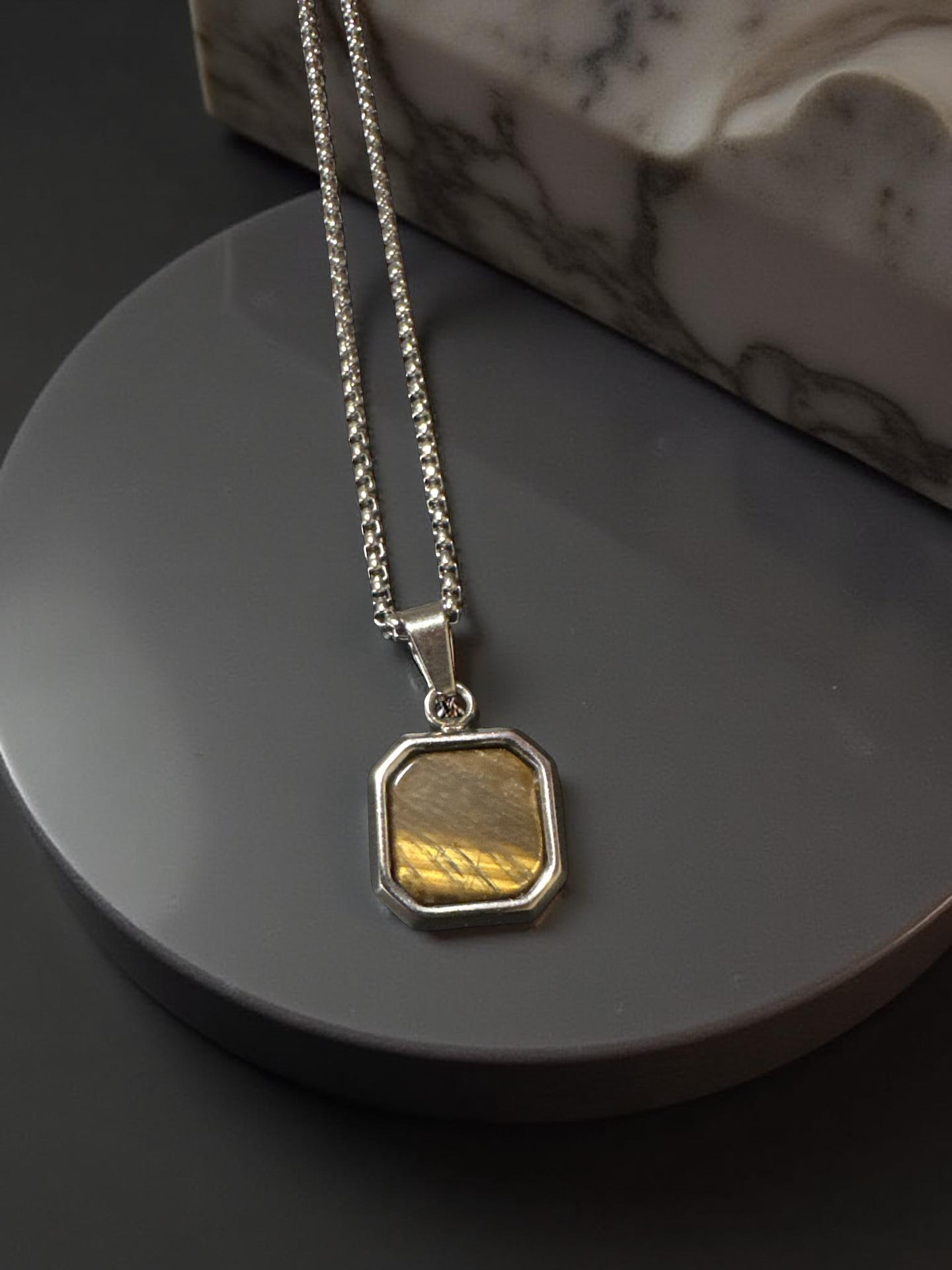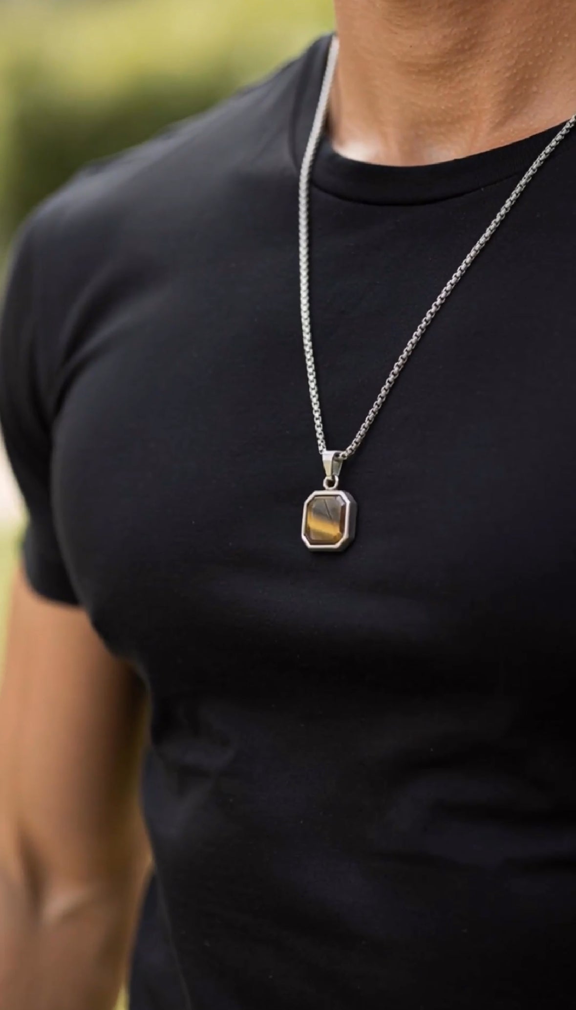 Colar em Aço Inoxidável com Pedra Olho de Tigre - é uma pedra que além de magnífica tem uma simbologia ligada à proteção e prosperidade.