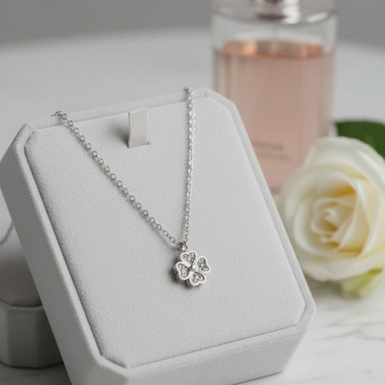 Colar em filigrana com formato de Trevo de Quatro folhas em Prata e Lei 925 - o maior simbolismo da sorte. Com origem nas antigas tradições dos povos celtas, acredita-se que encontrar um trevo com quatro folhas, e não apenas três, é um sinal de boa sorte. Os druídas acreditavam que o trevo de quatro folhas simbolizava a boa fortuna, e quem o possuísse passaria a ter a sorte dos deuses e os poderes da floresta.